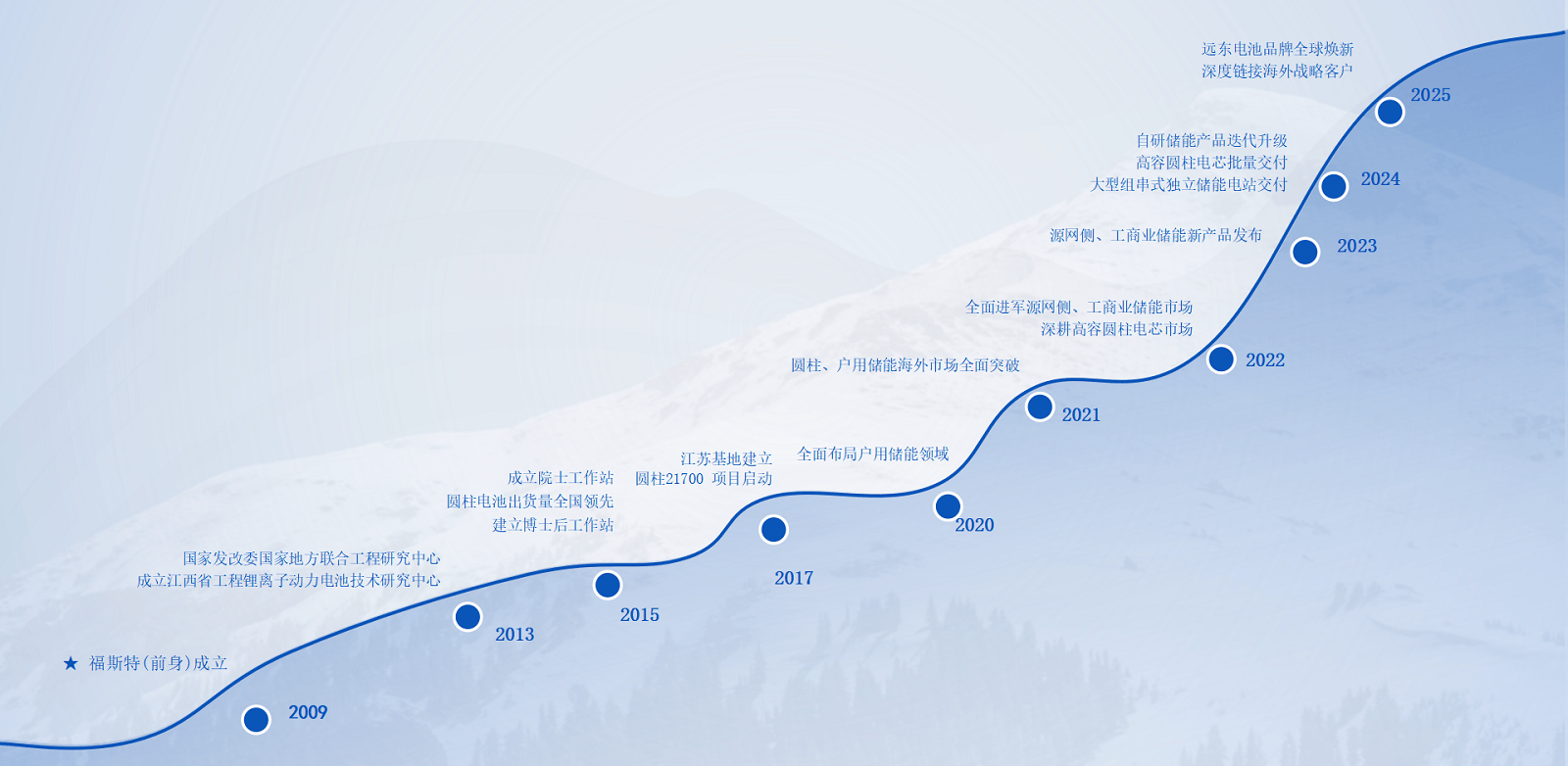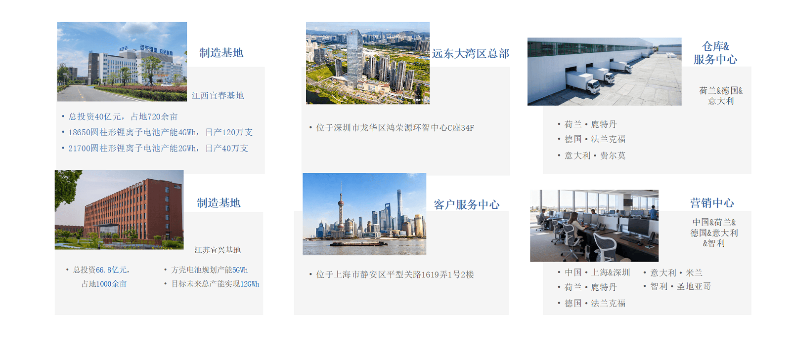 遠(yuǎn)東電池創(chuàng)立于2009年,是遠(yuǎn)東股份(股票代碼:600869)旗下子公司。遠(yuǎn)東電池深耕新能源領(lǐng)域,是一家集研發(fā)、生產(chǎn)、銷售于一體的全球化電池及儲能系統(tǒng)服務(wù)商。公司實現(xiàn)從電芯到儲能系統(tǒng)的全線布局,致力于為全球客戶提供安全、可靠、可持續(xù)的儲能及智慧能源管理服務(wù),場景覆蓋源網(wǎng)側(cè)、工商業(yè)及戶用。 遠(yuǎn)東電池以“共建共享安全 綠色 美好生活”為使命,持續(xù)探索儲能技術(shù)邊界,助力全球碳中和目標(biāo),致力于成為世界領(lǐng)先的電池及儲能系統(tǒng)服務(wù)商。